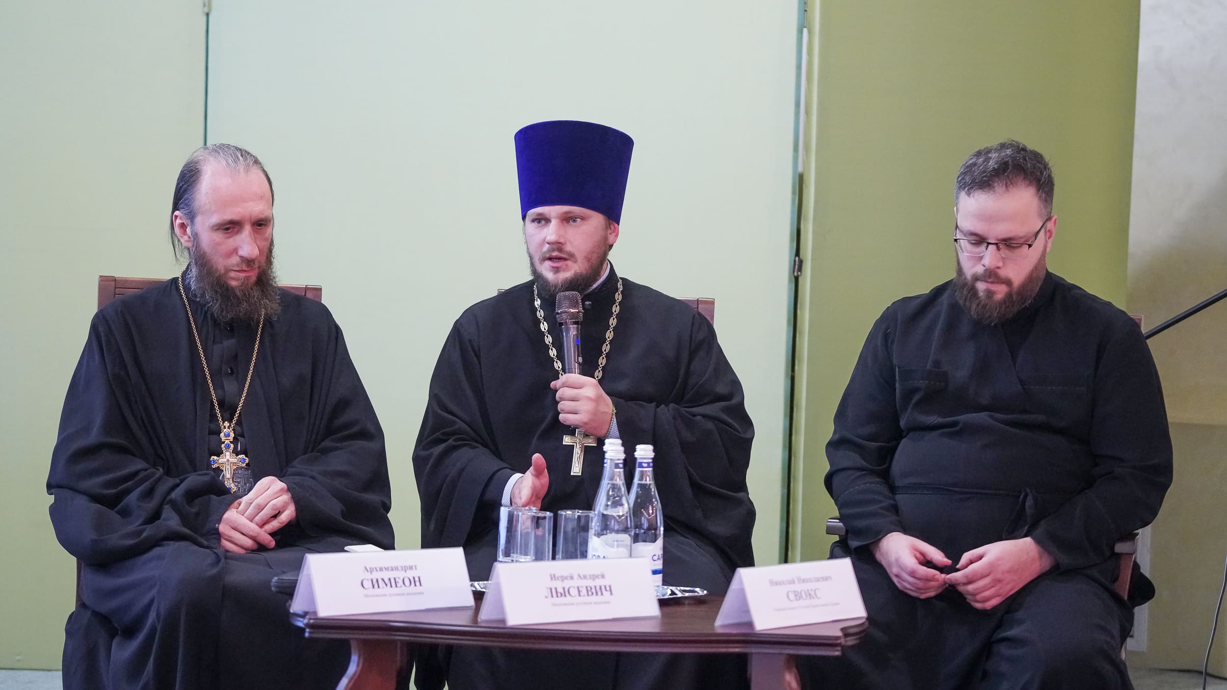 В рамках пленарного заседания также выступил доцент кафедры филологии Московской духовной академии, кандидат богословия, кандидат филологических наук архимандрит Симеон (Томачинский) и преподаватель и проректор по лицензированию и аккредитации Московской духовной академии, преподаватель ОЦАД, специалист Учебного комитета Русской Православной Церкви, кандидат теологии иерей Андрей Лысевич.