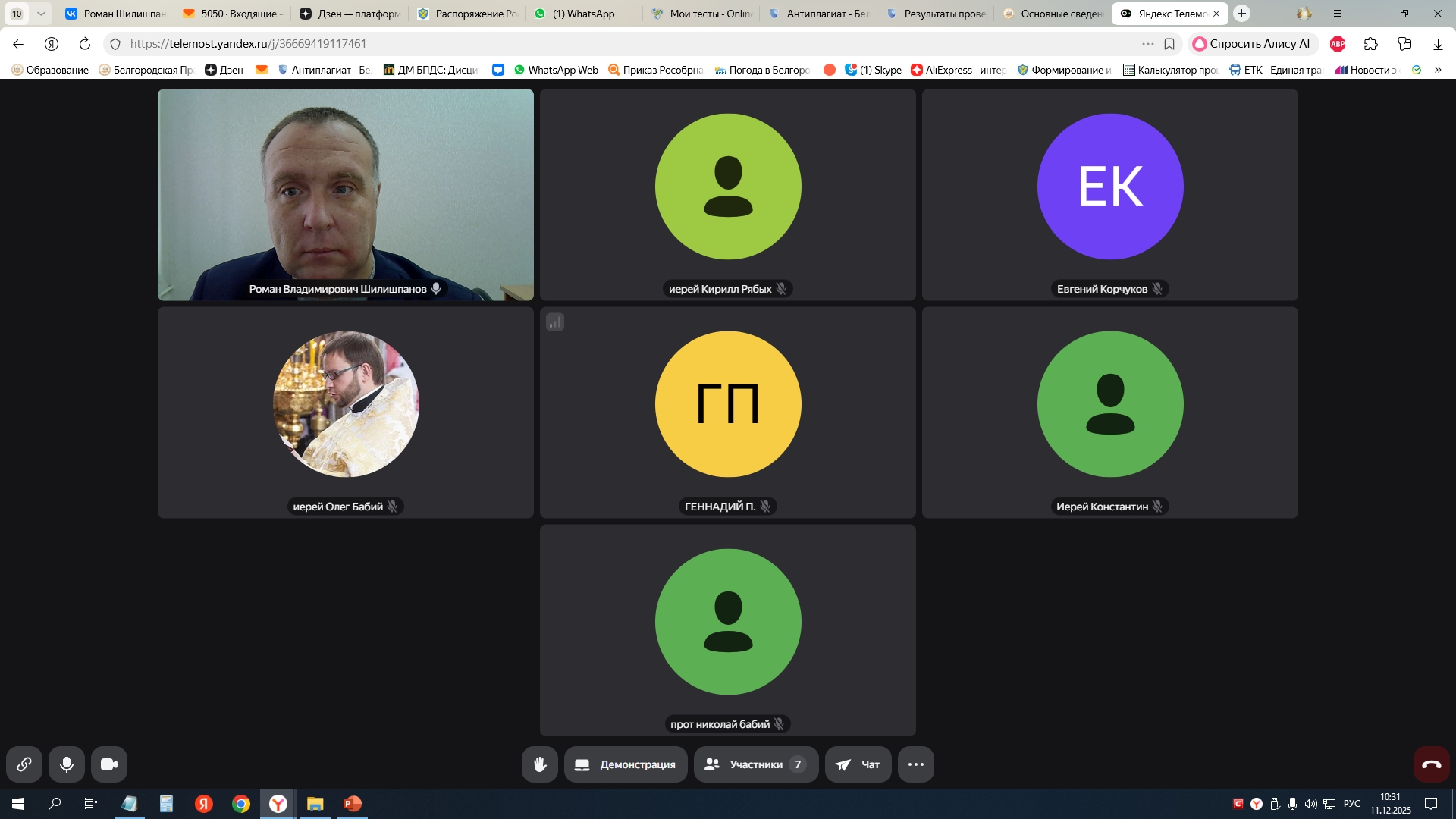 11 декабря 2025 г., проректор по лицензированию и аккредитации Р.В. Шилишпанов провел вебинаре для магистрантов второго курса заочного отделения Белгородской семинарии на тему: «Система “АнтиплагиатВУЗ” — наш помощник».