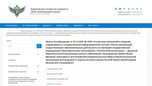 24 декабря 2025 г. Федеральная служба по надзору в сфере образования и науки приняла решение о том, что по результатам аккредитационной экспертизы основной образовательной программы «Миссиология» в отношении уровня образования магистратура 48.04.01 Теология, реализуемой в Белгородской православной духовной семинарии, подтверждено соответствие качества образования аккредитационным показателям.