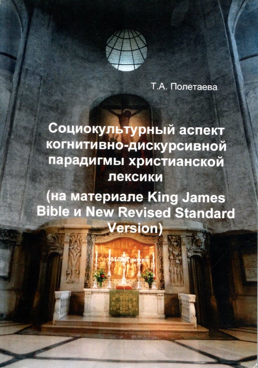 Полетаева Т.А. Социокультурный аспект когнитивно-дискурсивной парадигмы христианской лексики (на материале King James Bible и New Revised Standard Version): Монография. Рекомендовано к изданию РИС СТФ «НИУ БелГУ». — Издательство «Апробация», 2018. – 142 с.